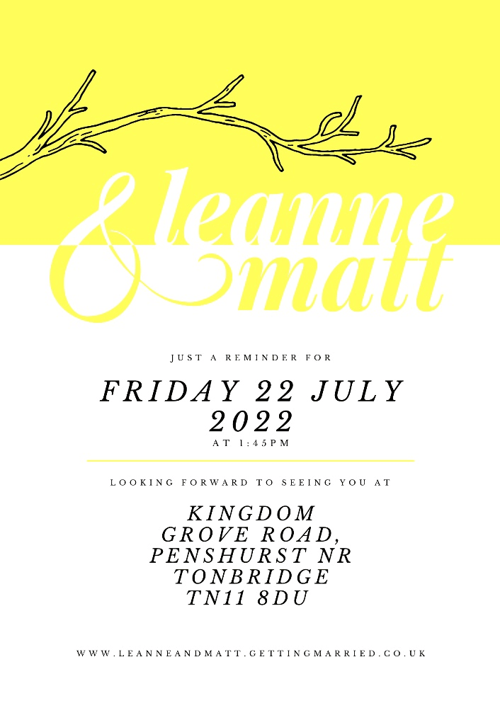 Despite the paper invites telling you to get there at 1:45pm, we've spoken to the venue and been told that it would be better if you were to get there at more like 1:30pm . Leanne will be turning in up at 1:45pm so will best if everyone's already there and settled.